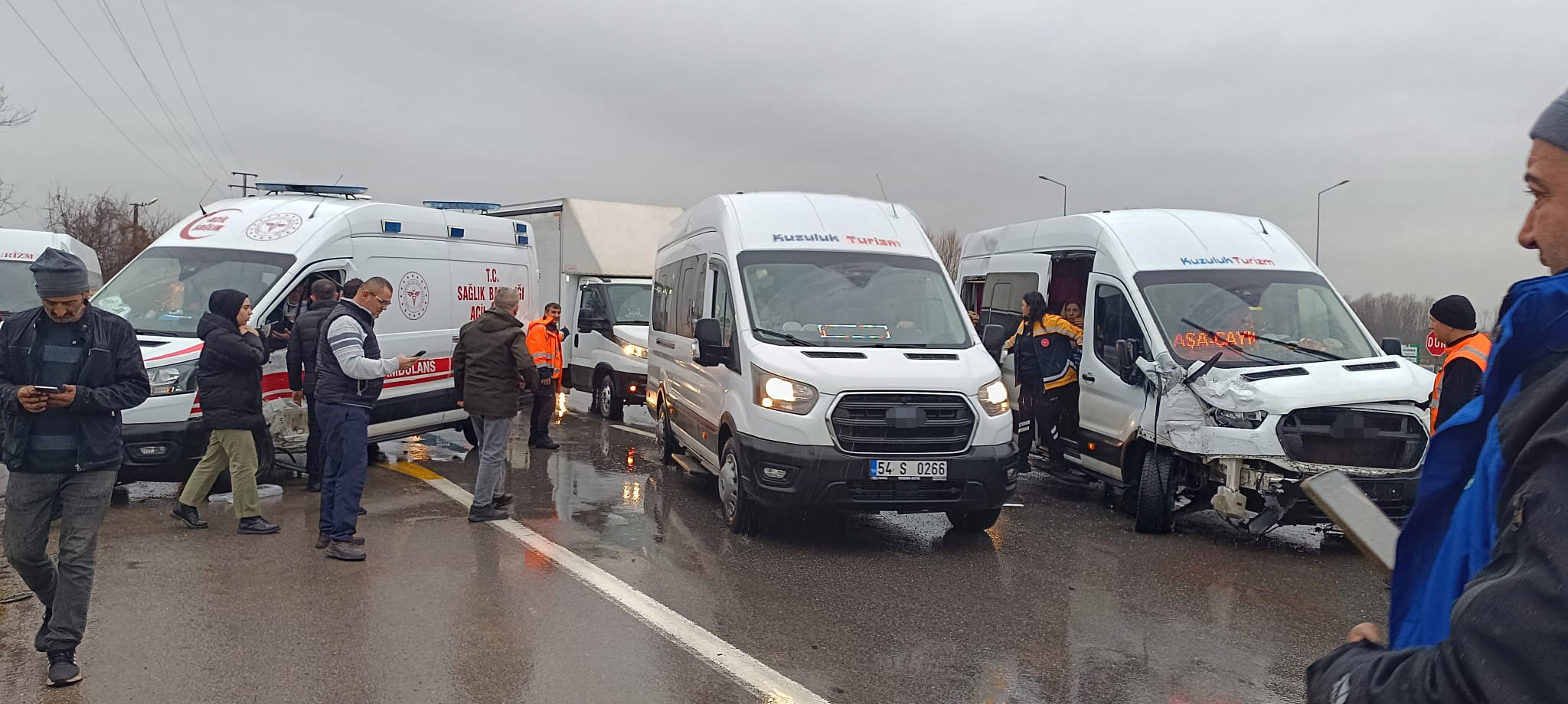 Kaza, saat 17.00 sıralarında D-140 karayolu Bedilkazancı Mahallesi Kavşağı’nda meydana geldi. Edinilen bilgilere göre, D.B.Ş. yönetimindeki 54 AFA 169 plakalı ambulans ile işçileri taşıyan A.S. idaresindeki 54 S 1123 plakalı servis minibüsü henüz bilinmeyen bir nedenle çarpıştı. Çarpışmanın şiddetiyle her iki araçta da hasar oluştu.