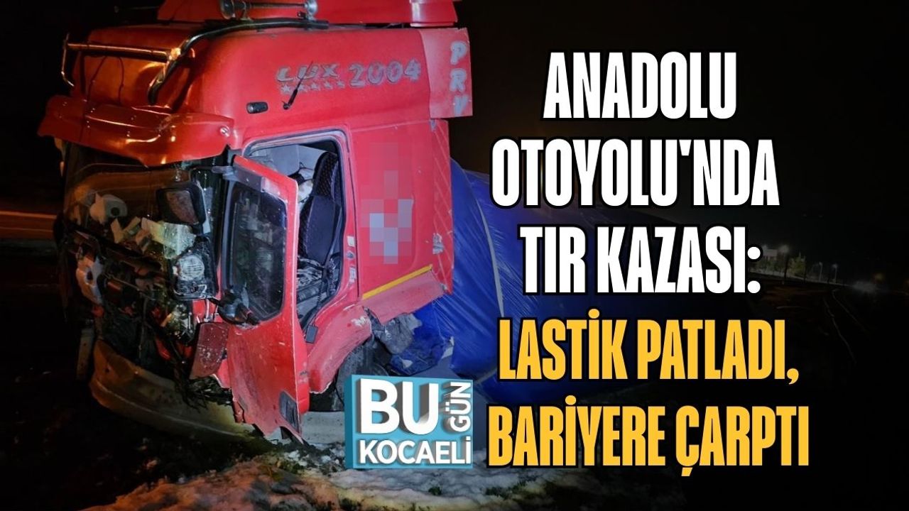 Anadolu Otoyolu’nun Düzce bölümünde gece saatlerinde meydana gelen kazada, seyir halindeki bir tırın lastiği patladı. Kontrolden çıkan araç sol bariyerlere çarparak durabildi. Olay yerine sevk edilen ekipler kazada şans eseri yaralanan olmadığını belirledi. Kısa süreliğine aksayan trafik, tırın olay yerinden kaldırılmasının ardından normale döndü.