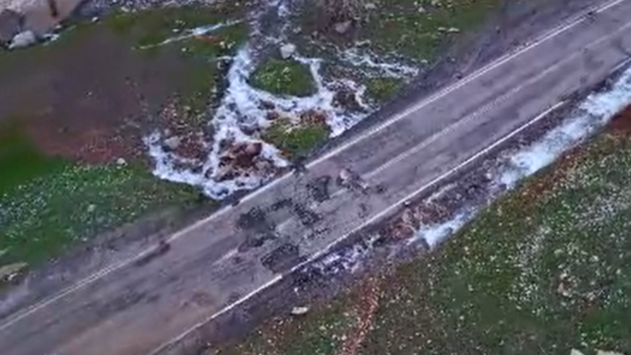 Hakkari’nin Derecik ile Şemdinli ilçeleri arasındaki ana yolda ilginç bir doğa olayı yaşandı. Asfalt zeminin tam ortasından su pınarı ortaya çıkarken, kısa sürede yola yayılan su sürücüler için risk oluşturdu.