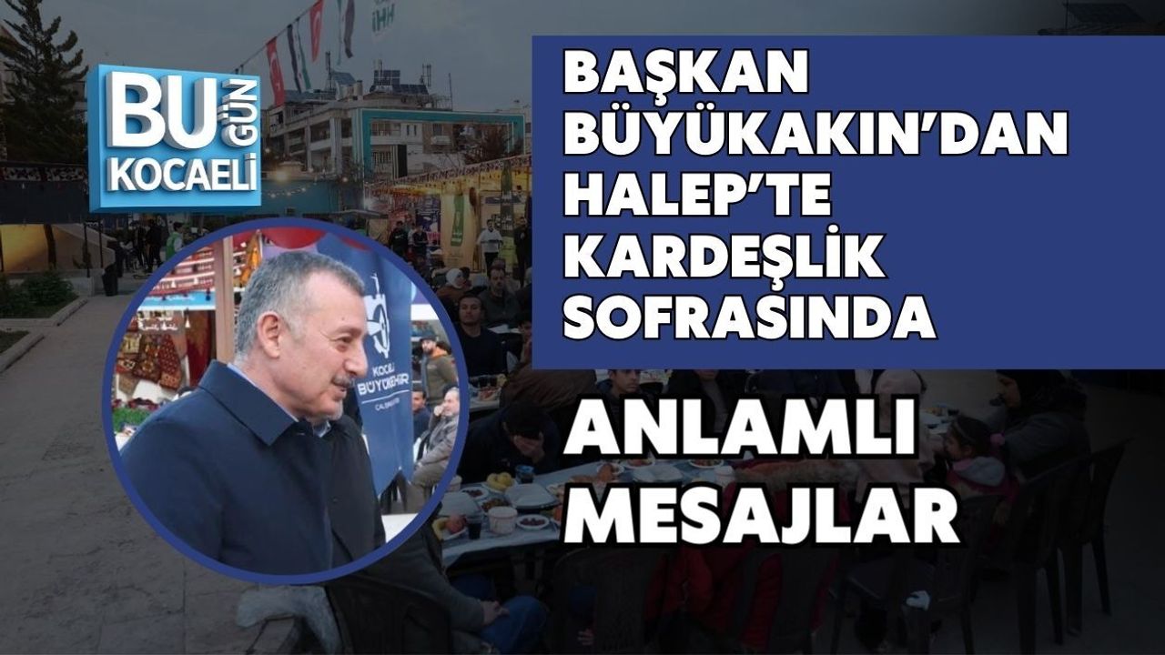 Kocaeli Büyükşehir Belediye Başkanı Tahir Büyükakın, Ramazan ayı boyunca gönül coğrafyasının farklı noktalarında kurulan Kardeşlik Sofraları’nın son durağı olan Suriye’nin Halep kentinde düzenlenen iftar programına katıldı. Ramazan’ın paylaşma ve dayanışma ruhunu yaşatmak amacıyla gerçekleştirilen organizasyonda Haleplilerle bir araya gelen Başkan Büyükakın, Cumhurbaşkanı Recep Tayyip Erdoğan’ın ve Türk halkının selamlarını iletti. Yoğun ilgiyle karşılanan Büyükakın, iftar programında vatandaşlarla sohbet ederek Ramazan’ın manevi atmosferini birlikte yaşadı.