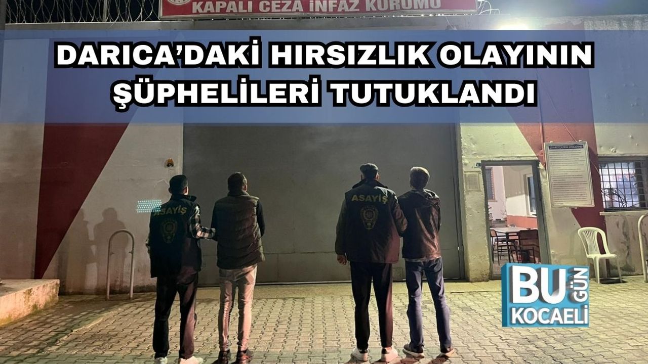 Kocaeli'nin Darıca ilçesinde 27 Aralık 2025 tarihinde meydana gelen hırsızlık olayıyla ilgili yürütülen soruşturma kapsamında U.İ. (46) ve S.İ. (35) isimli iki şüpheli 7 Ocak 2026 günü yakalandı. Emniyet ekiplerinin titiz çalışması sonucunda gözaltına alınan şüpheliler, çıkarıldıkları adli makamlarca tutuklanarak Kandıra Cezaevi’ne gönderildi. Olayla ilgili soruşturma sürerken, Kocaeli Emniyet Müdürlüğü'nden suçla mücadeleye ilişkin kararlılık vurgusu yapıldı.