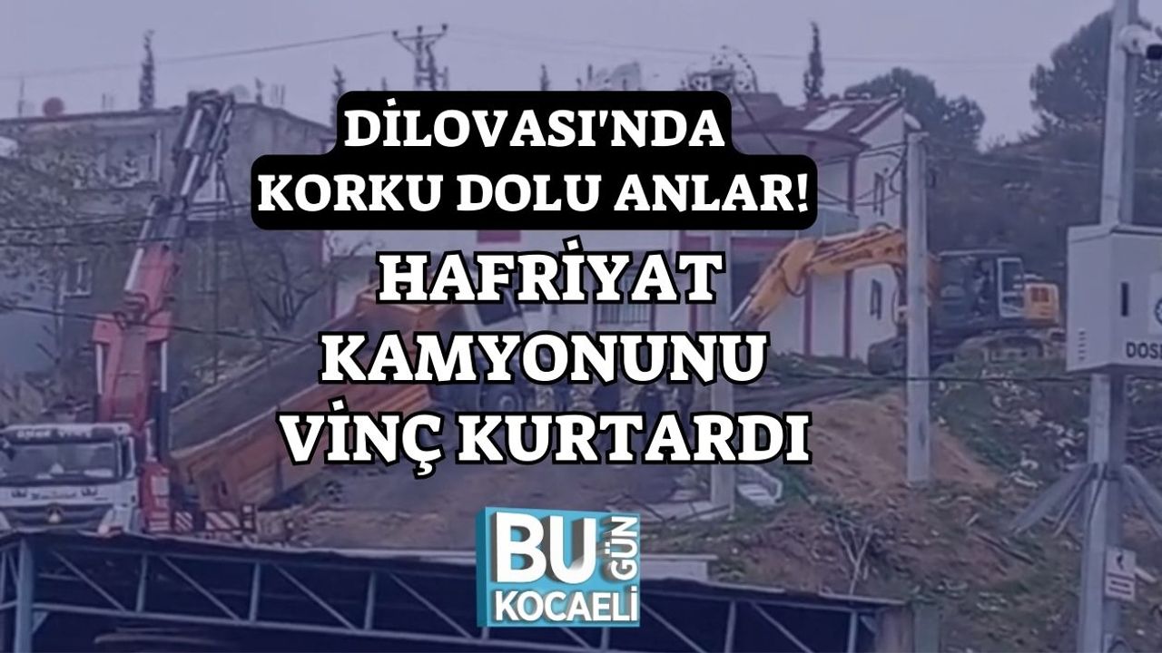 Olay, Dilovası Kayapınar Mahallesi’ndeki Eynerce Caddesi üzerinde bulunan bir hafriyat sahasında meydana geldi. Edinilen bilgilere göre, hafriyat taşıyan kamyon yükünü boşalttığı esnada kontrolünü kaybederek geriye doğru kaymaya başladı. Yoldan çıkan kamyon, zeminin eğimli olması nedeniyle yol kenarında askıda kaldı. Kaza anında çevrede iş makineleri ve personel bulunmasına rağmen herhangi bir can kaybı ya da yaralanma yaşanmadı.