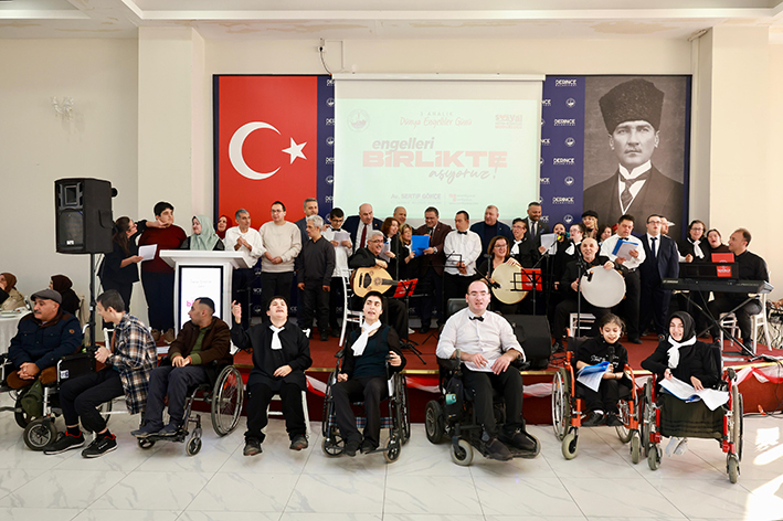 Derince Belediyesi’nin 3 Aralık Dünya Engelliler Günü için organize ettiği program, Yenikent Kültür Merkezi’nde yoğun katılımla gerçekleşti. Engelsiz Yaşama Destek Merkezi (EYDEM) kursiyerlerinin yer aldığı etkinlikte, katılımcılar arasında Derince Belediye Başkanı Av. Sertif Gökçe, belediye başkan yardımcıları, siyasi parti temsilcileri, meclis üyeleri, mahalle muhtarları, sivil toplum kuruluşlarının yöneticileri ve kamu kurumlarının temsilcileri yer aldı. EYDEM ailesinin de hazır bulunduğu etkinlik, adeta bir dayanışma ve farkındalık buluşmasına dönüştü.