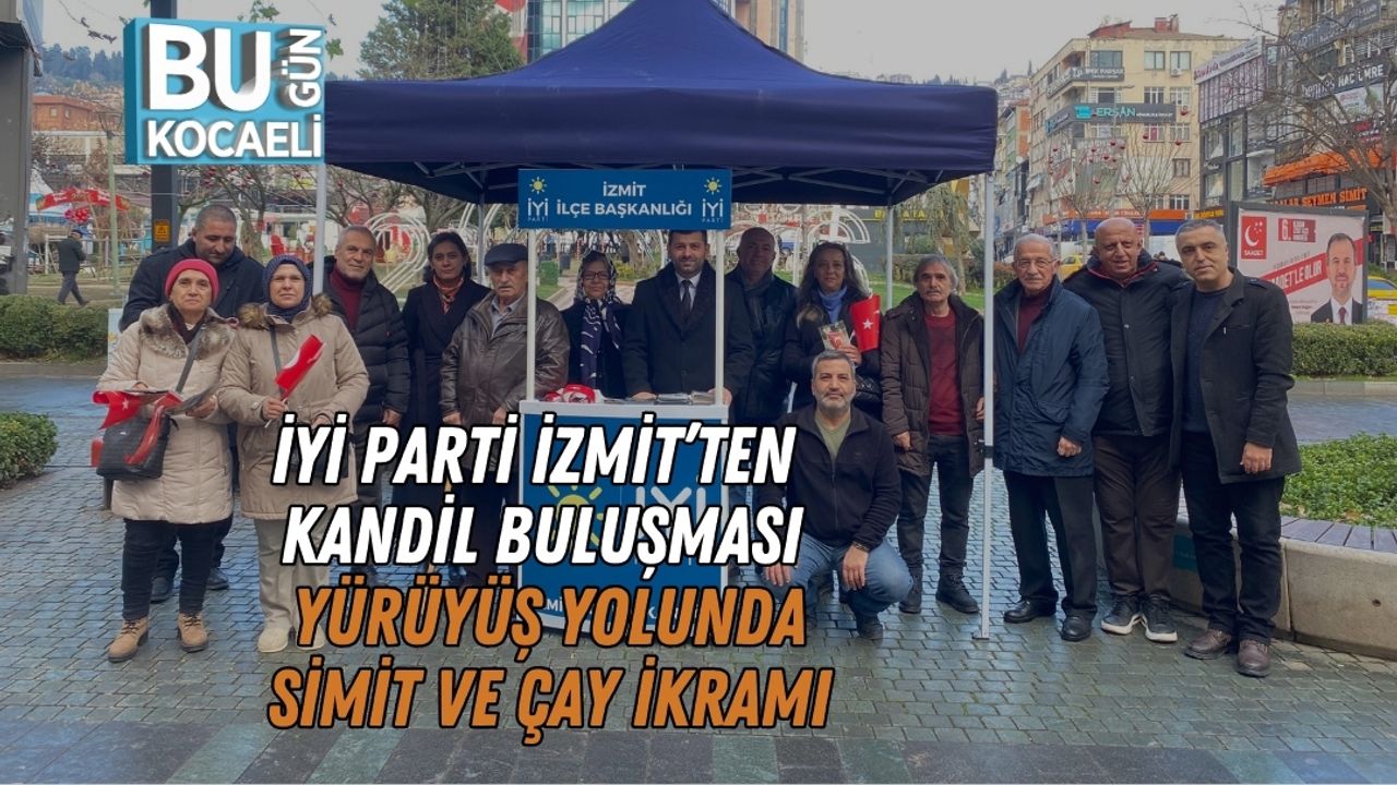 İYİ Parti İzmit İlçe Başkanlığı, kandil gününün manevi atmosferini vatandaşlarla birlikte yaşamak amacıyla İzmit Yürüyüş Yolu’nda stant kurdu. Gün boyunca devam eden etkinlikte, farklı yaş gruplarından çok sayıda İzmitli ile bir araya gelinerek kandil simidi ve çay ikramı yapıldı.