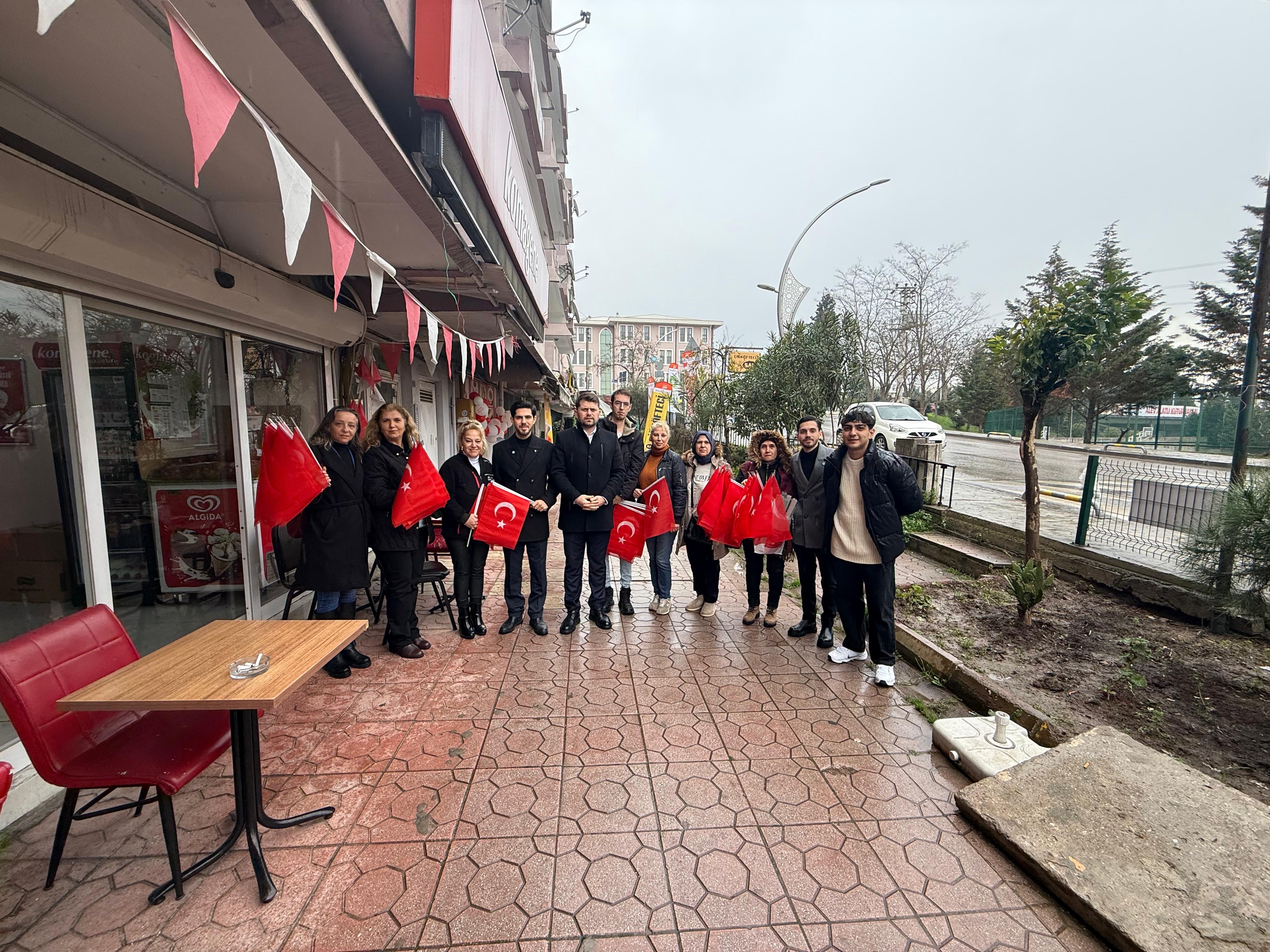 Son günlerde Türk bayrağına yönelik yaşanan bazı provokatif olaylar kamuoyunda hassasiyet oluştururken, İzmit’te dikkat çeken bir saha çalışması gerçekleştirildi. İYİ Parti İzmit İlçe Başkanlığı koordinasyonunda, İlçe Kadın Kolları ve İlçe Gençlik Kolları’nın katılımıyla Kuruçeşme Mahallesi’nde esnafa Türk bayrağı dağıtıldı. Çalışma kapsamında parti yöneticileri, esnaf ve vatandaşlarla birebir temas kurarak görüş alışverişinde bulundu.