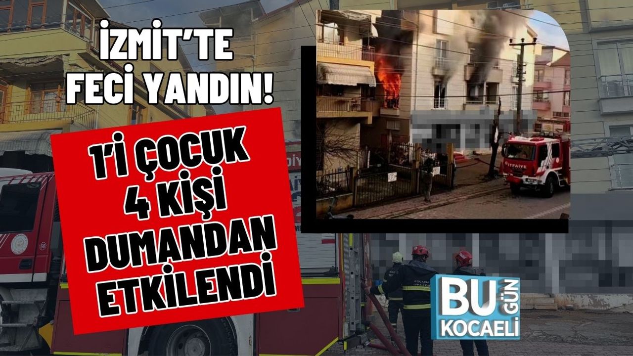 Kocaeli'nin İzmit ilçesinde 4 katlı bir apartmanın ikinci katında çıkan yangın paniğe neden oldu. Yenişehir Mahallesi Özden Sokak'ta meydana gelen olayda, daire kısa sürede alevlere teslim olurken, binayı saran duman nedeniyle 1’i çocuk 4 kişi dumandan etkilendi. Yangın, itfaiye ekiplerinin hızlı müdahalesiyle kontrol altına alınarak söndürüldü. Yaralılar olay yerindeki ambulansta tedavi altına alınırken, yangında tamamen kullanılmaz hale gelen daireyle ilgili soruşturma başlatıldı.