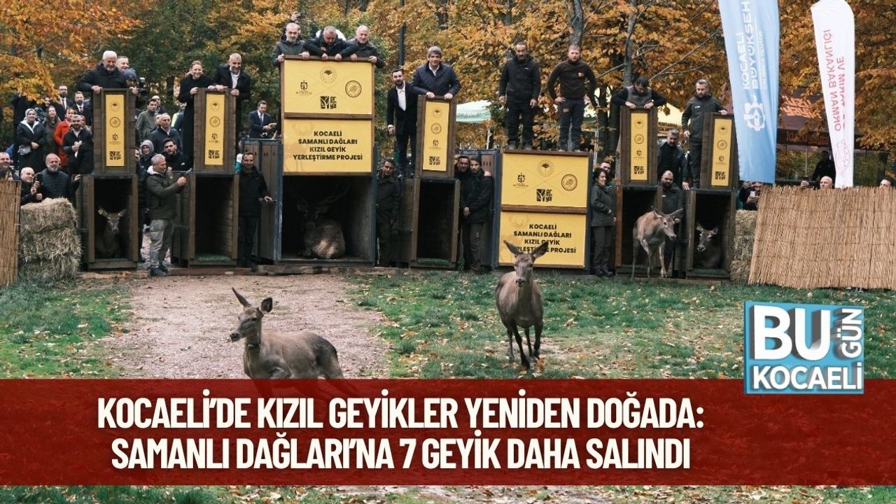 Kocaeli Büyükşehir Belediyesi, yaban hayatının korunması ve geliştirilmesi amacıyla yürüttüğü “Kocaeli Samanlı Dağları Kızıl Geyik Yerleştirme Projesi” kapsamında, bu yıl 7 kızıl geyiği daha doğaya kazandırdı. 2024 yılı sonbaharında ilk etapta 15 geyikle başlayan proje, Kuzuyayla Tabiat Parkı’nda düzenlenen törenle ikinci aşamasına taşındı.