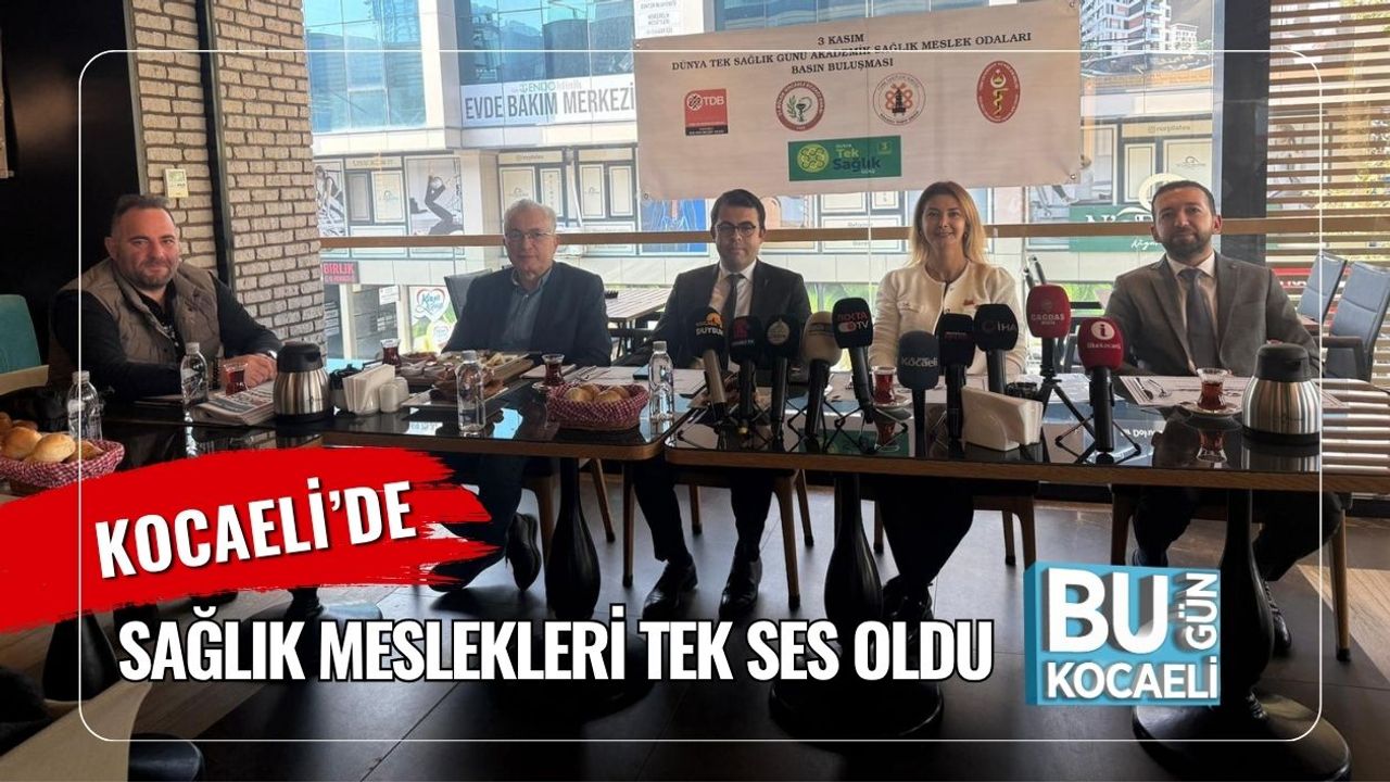 3 Kasım Dünya Tek Sağlık Günü dolayısıyla Kocaeli Diş Hekimleri Odası (TDB) Başkanı Meltem Çağın Alkan Yıldırım, 31. Bölge Kocaeli Eczacı Odası Başkanı Mustafa Ezer, Kocaeli Tabip Odası (TTB) Temsilcisi Ülkü Başdaş ve Kocaeli Veteriner Hekimleri Odası Başkanı Mehmet Bostancı ile akademik meslek odaları temsilcileri İzmit’te düzenlenen ortak basın toplantısında bir araya geldi. “3 Kasım Dünya Tek Sağlık Günü – Akademik Sağlık Meslek Odaları Basın Buluşması” başlığıyla gerçekleştirilen etkinlik, Hoşgör Pastanesi Yuvam Şubesi’nde gerçekleştirildi.
