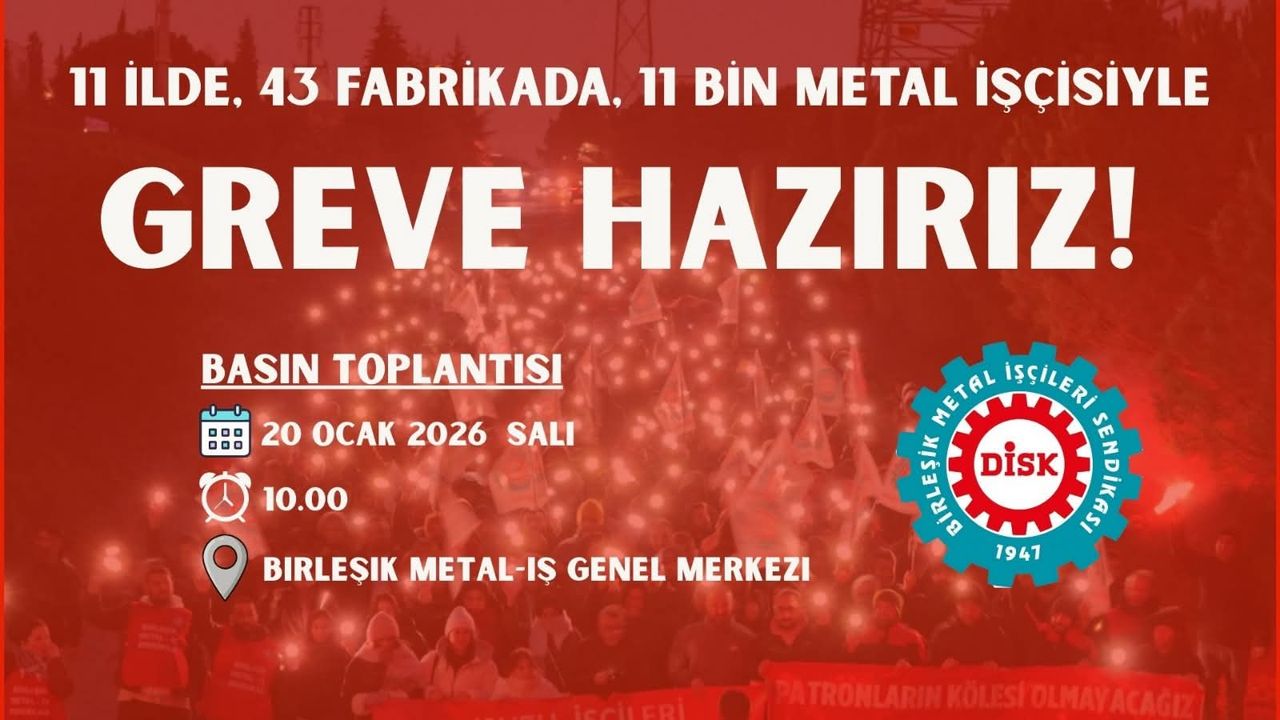 Özkan Atar’ın yanı sıra Genel Yönetim Kurulu üyeleri ve metal işçilerinin katılımıyla 20 Ocak 2026 Salı günü bir basın toplantısı düzenlenecek. Toplantıda, grev kararlarını da içeren mücadele takviminin kamuoyuna açıklanacağı bildirildi.