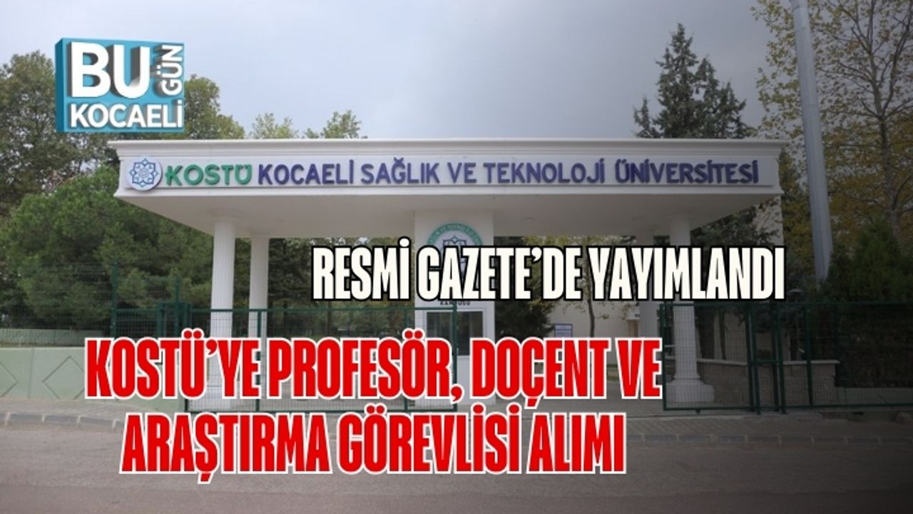 Kocaeli Sağlık ve Teknoloji Üniversitesi (KOSTÜ) farklı fakülteler için toplam 6 akademik personel alımını Resmî Gazete’de yayımlanan ilanla duyurdu. Adaylar başvurularını 20 Ocak 2026 tarihine kadar gerçekleştirebilecek.