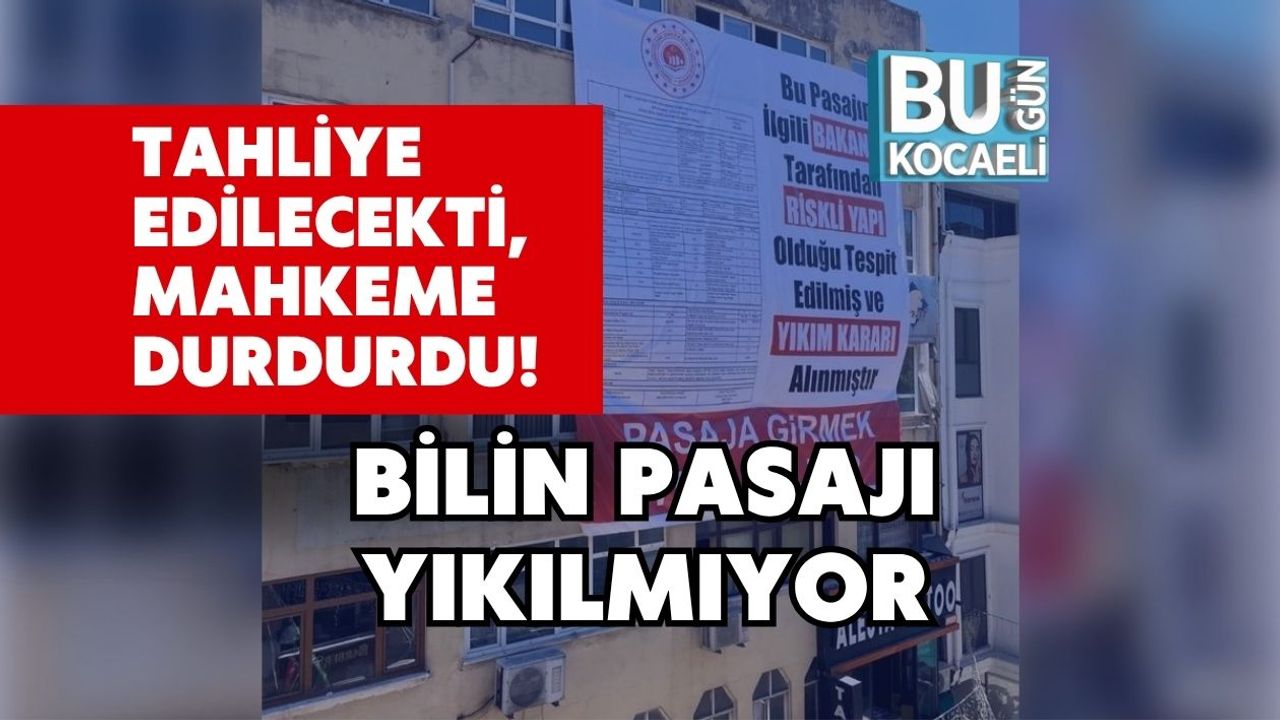 Riskli yapı ilan edilen Bilin Pasajı için İzmit Belediyesi, 21 Kasım tarihinde tahliye kararı almıştı. Ancak bu karara karşı çıkan pasaj esnafı ve bazı hissedarlar, yürütmenin durdurulması için mahkemeye başvurdu. Kocaeli 2. İdare Mahkemesi, başvuruyu ilk incelemede kabul ederek tahliye işleminin durdurulmasına hükmetti. Belediye savunması alınmadan işlem yapılamayacağı belirtilirken, mahkeme belediyeye bilgi ve belge sunması için 15 gün süre tanıdı.