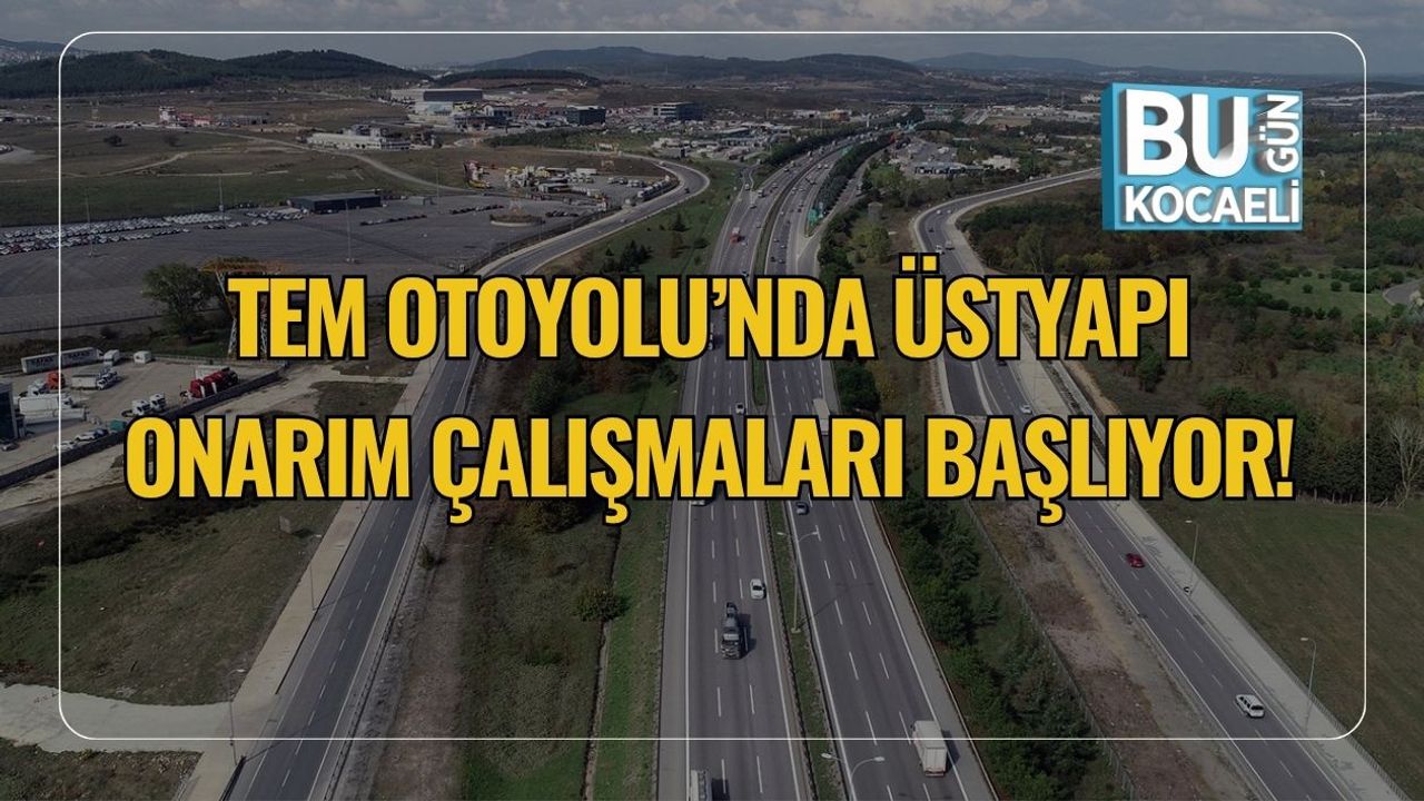Kocaeli’de TEM Otoyolu Gebze Kavşağı ile Dilovası Kavşağı arasındaki üstyapı onarım ve yenileme çalışmaları, 1 Ekim Çarşamba günü saat 09.00 itibarıyla başlayacak. Çalışmalar kapsamında trafik düzenlemeleri yapılacak, sürücüler alternatif güzergahları kullanacak.