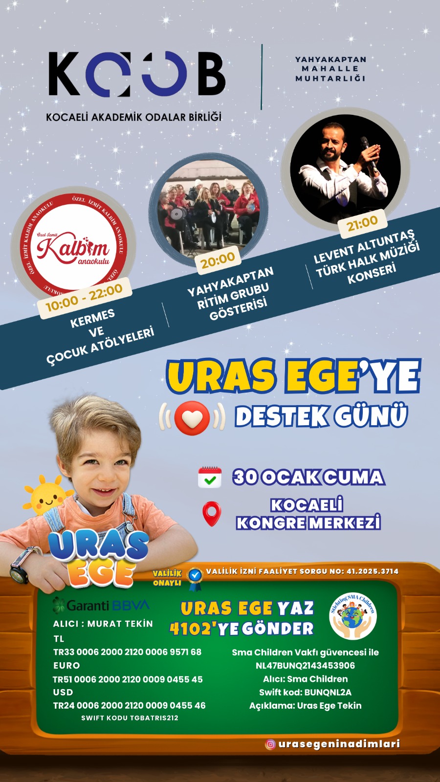 Uras Ege’ye destek olmak isteyenler, konsere katılarak ya da bağış yaparak kampanyaya katkı sunabilecek. Bağışlar, baba Murat Tekin adına açılan valilik onaylı IBAN hesabı üzerinden gerçekleştirilebilecek: