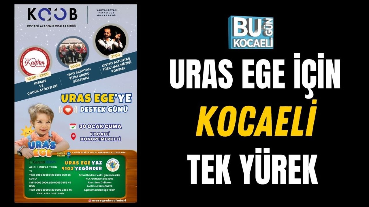 Kocaeli Akademik Odalar Birliği ile Yahyakaptan Mahalle Muhtarlığı iş birliğinde düzenlenen “Uras Ege’ye Destek Günü”, 30 Ocak Cuma günü Kocaeli Kongre Merkezi Fuaye Salonu’nda gerçekleştirilecek. Valilik izniyle yapılacak etkinlik, Kocaelilileri dayanışmanın sıcaklığı etrafında bir araya getirmeyi amaçlıyor.