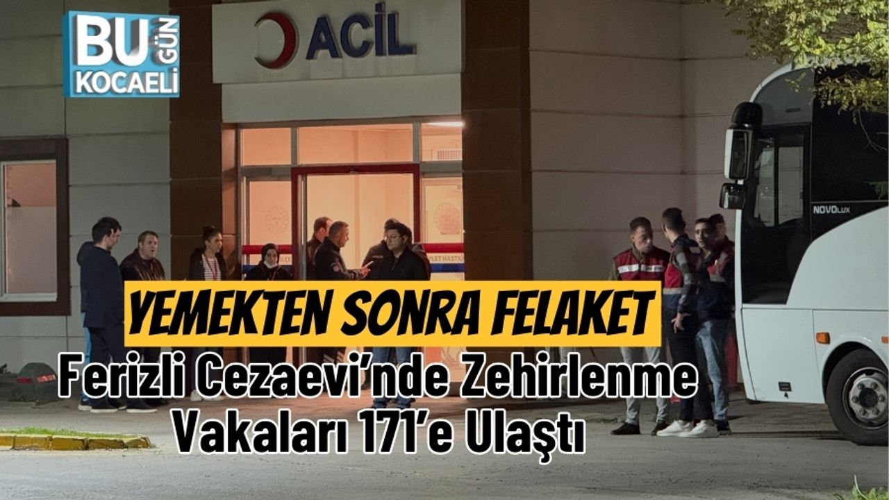 Sakarya’nın Ferizli ilçesinde bulunan Açık Ceza İnfaz Kurumu’nda akşam yemeği sonrası çok sayıda hükümlüde mide bulantısı, kusma, baş dönmesi ve halsizlik gibi şikayetlerin görülmesi üzerine zehirlenme şüphesiyle tedavi süreci başlatıldı. Hükümlü sayısının 171’e yükseldiği bildirildi.
